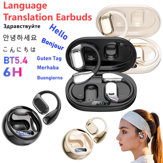 Real Time AI Translator Earbuds Bluetooth-Compatible 5.4 Noise Cancelling Smart Voice Translator Ear Hook Translation Earphones